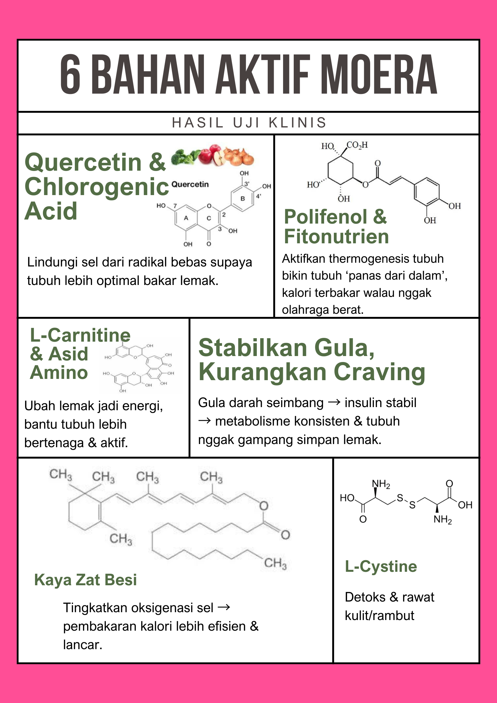 Plus, Moera juga punya 18 jenis asam amino aktif yang tetap utuh bantu rawat kulit & energi tubuh sambil nurunin berat.