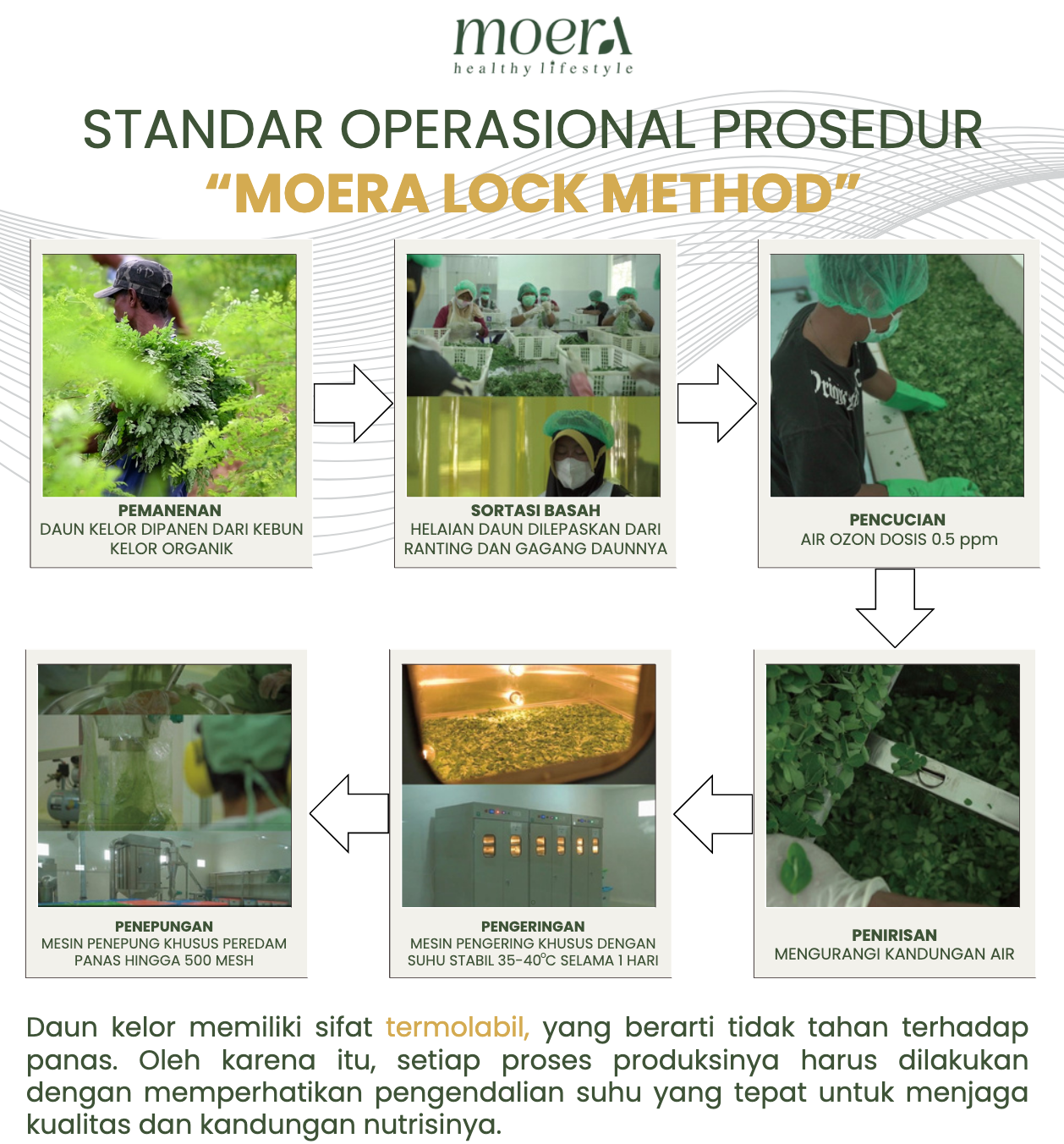 Moera dipetik dari kebun organik, lalu diproses sesuai standar premium seperti berikut: